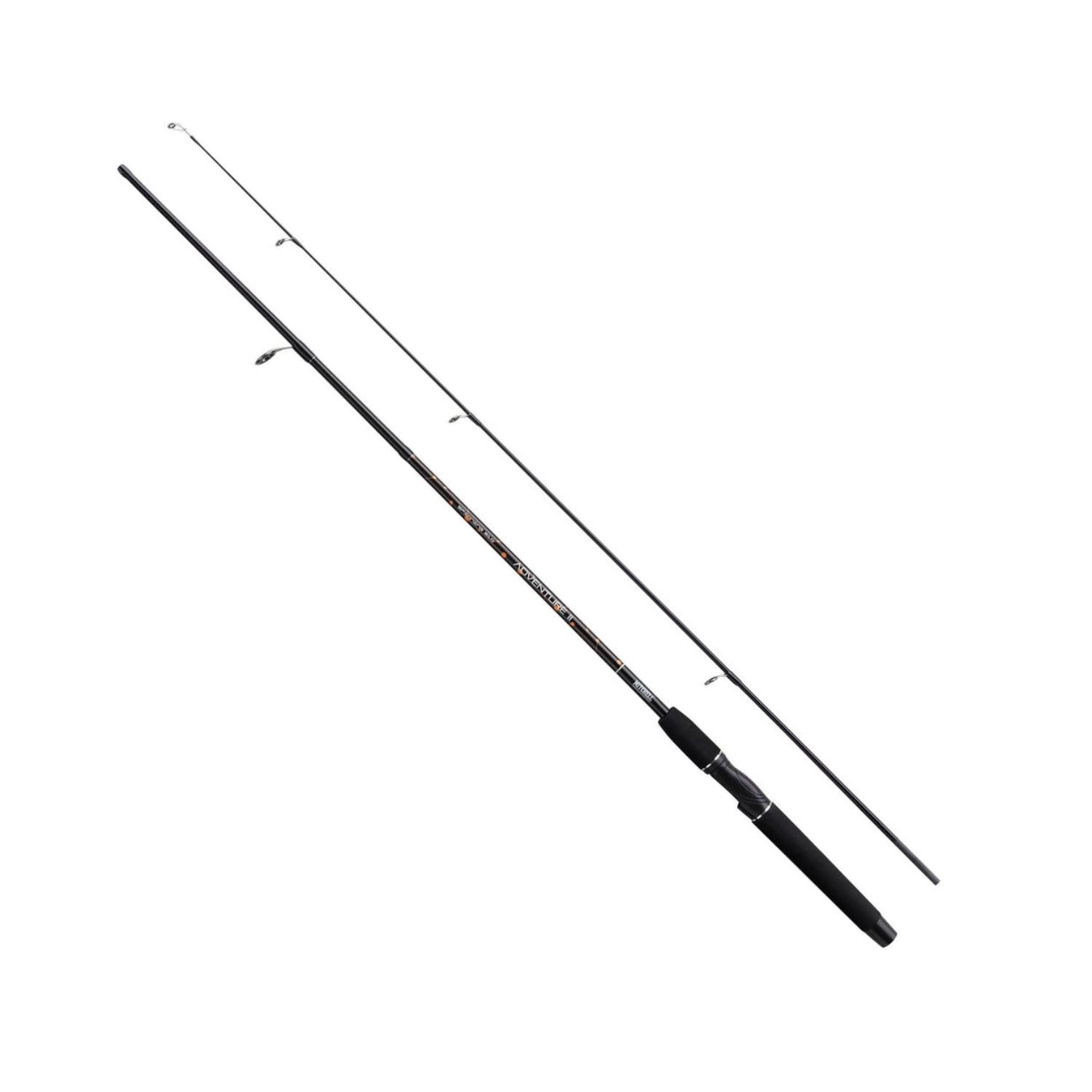 Caña de pesca Mitchell Adventure II, diseñada para pescadores que buscan resistencia y versatilidad. Destaca por su construcción en fibra de vidrio, acción moderada y excelente capacidad de lance.