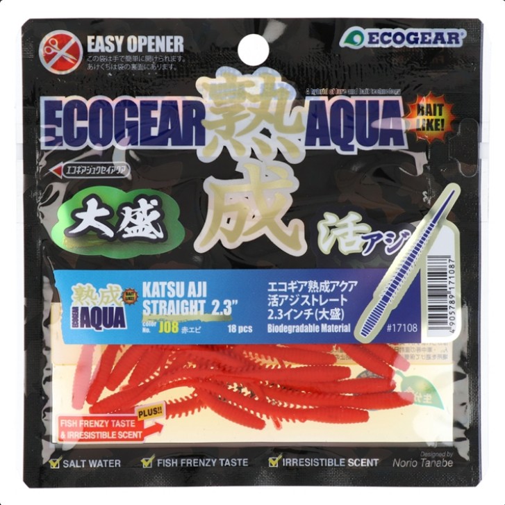 El Ecogear Jukusei Aqua Katsu Aji Straight 2.3” es un vinilo híbrido (bait × lure material) desarrollado para pesca técnica de jurel tipo ajing. Mide 2.3 pulgadas (aprox. 5,8 cm) y está diseñado para trabajar con presentaciones finas en corriente débil o peces suspendidos. Su cuerpo recto genera una acción natural incluso con mínima animación, permitiendo mantenerlo dentro del rango donde el pez se alimenta.